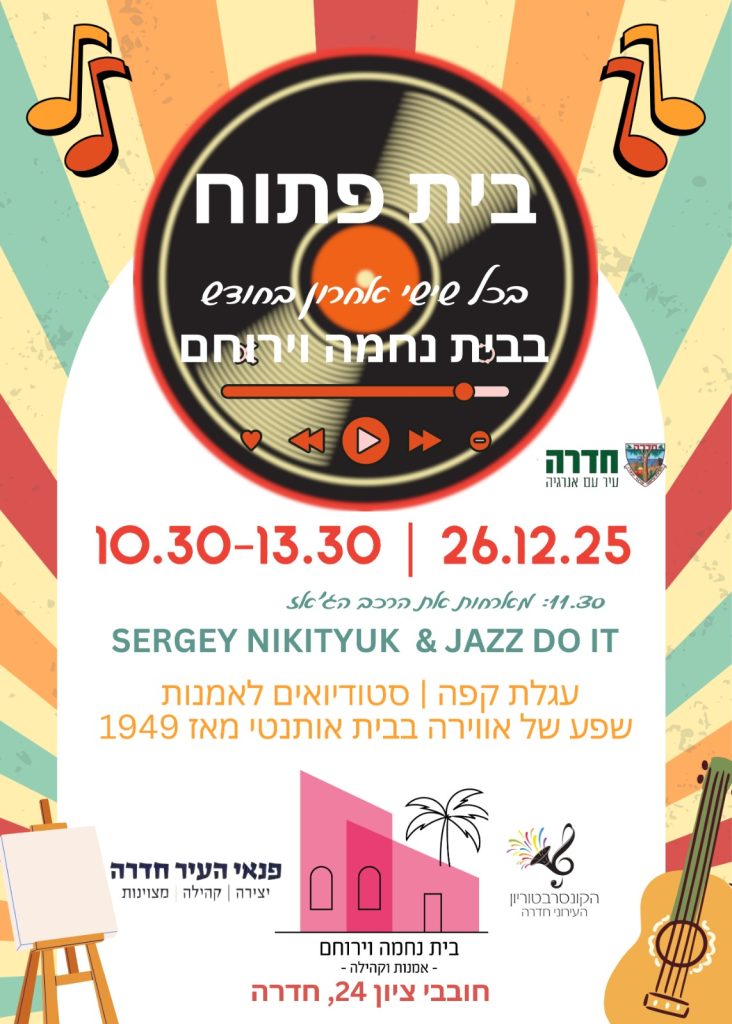 המועד הקרוב: 26/12 | 10.30-13.30 בכל שישי אחרון של החודש אנחנו מקבלות יחד את סוף השבוע ביצירתיות, ונסיים חודש עם שישי מלא השראה! והפעם בשיתוף פעולה עם פנאי העיר חדרה והקונסבטוריון העירוני, מארחות את הרכב הג'אז: Sergey Nikityuk&jazz do it וכרגיל: עגלת הקפה של סופי CaravanCafé עם קפה משובח, מאפים צרפתיים והפתעות לפי העונה גינה […]